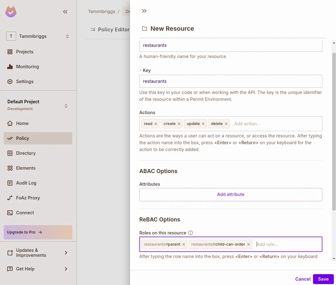 Create a ReBAC Resource for Restaurants